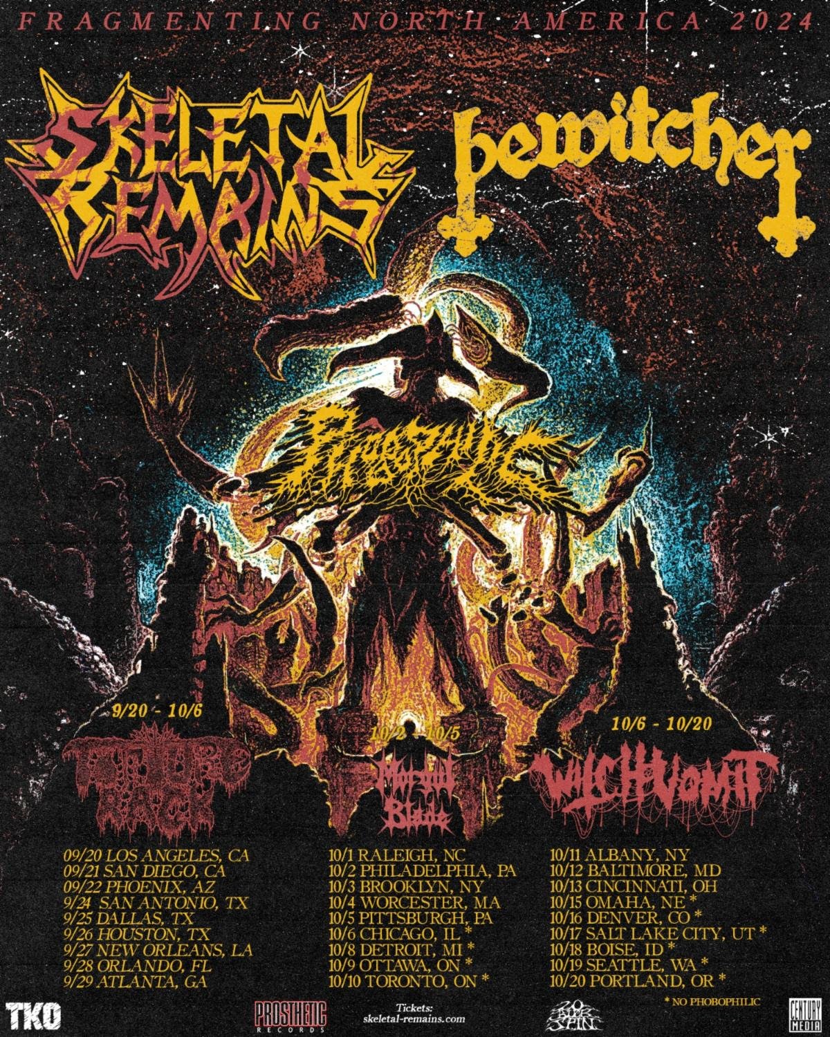 Skeletal Remains and Bewitcher have announced a co-headlining North American tour. Phobophilic, Torture Rack, Morgul Blade, and Witch Vomit will open on select dates.