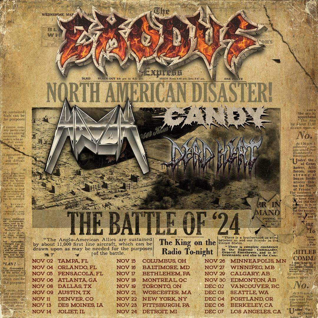 Exodus have announced a headlining North American tour. Havok, Candy, and Dead Heat will open.