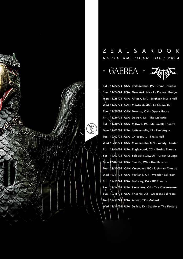 Zeal & Ardor have announced a headlining North American tour with Gaerea and Zetra. Here’s the dates: