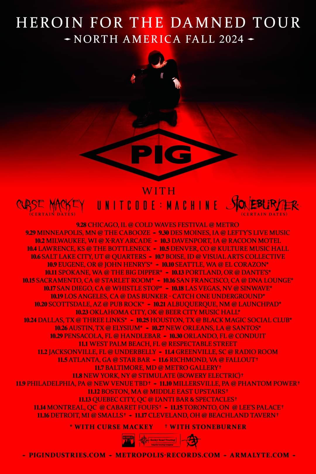 PIG have announced a headlining North American tour. Curse Mackey, Unitcode:Machine, and Stoneburner will open on select dates.
