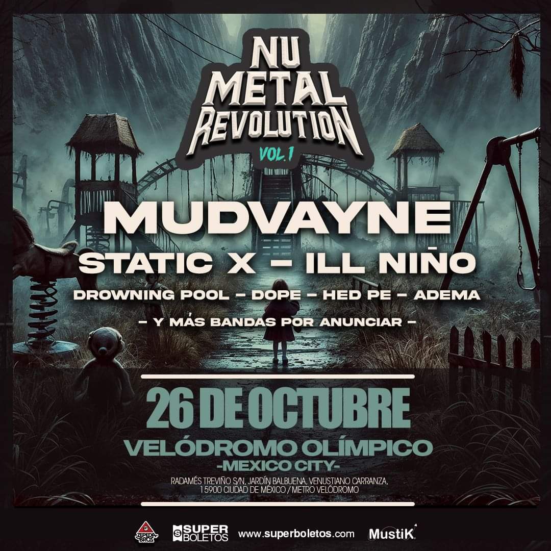 The initial lineup has been revealed for this year’s Nu Metal Revolution festival. The event will take place at the Velodrom Olimpico in Mexico City, Mexico on October 26 and it will feature: Mudvayne, Static-X, Ill Niño, Drowning Pool, Dope, (hed)p.e., and Adema.