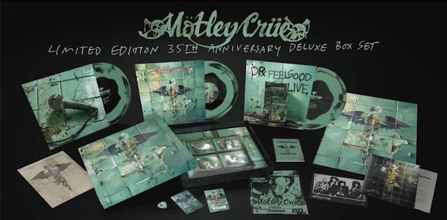 The box set also features a 24 page replica tour book with never before seen and never before published live and behind the scenes photos, a replica ‘Dr. Feelgood’ Tour itinerary, poster, patch, backstage pass, live show handbill, press kit, medical envelope and guitar pick.