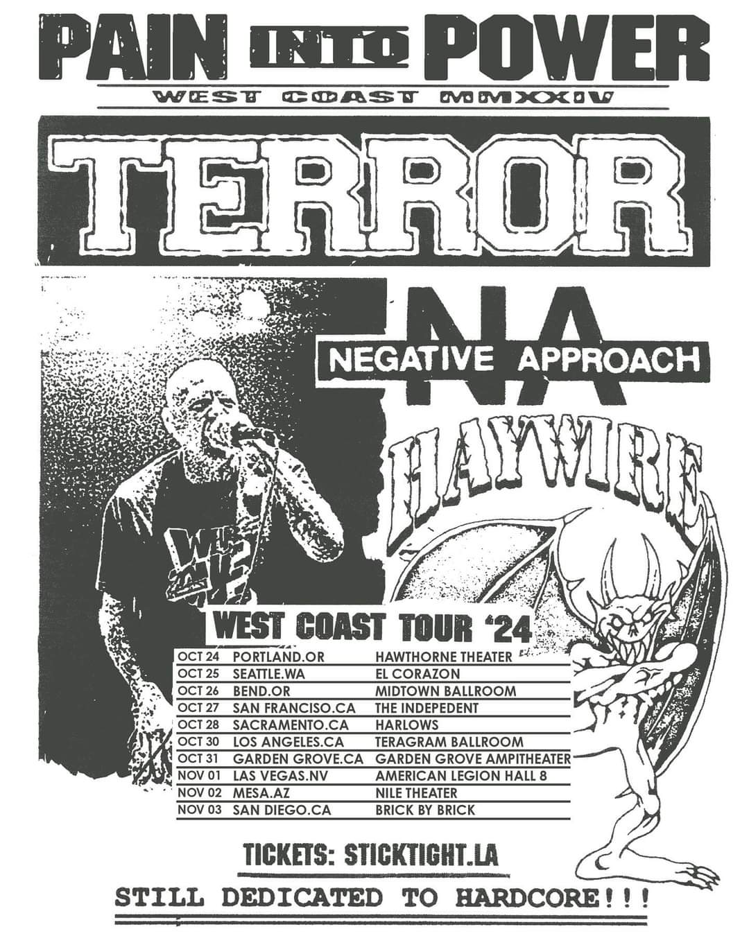 Terror have announced a West Coast tour with Negative Approach and Haywire. Here’s the dates:
