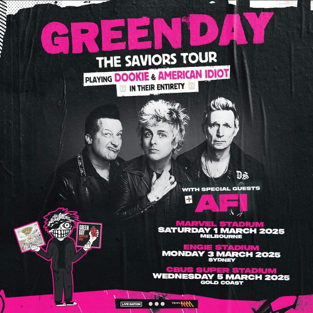 Green Day have announced a headlining Australian tour with AFI. The trek will find the band performing “Dookie” and “American Idiot” in their entireties. Here’s the dates: