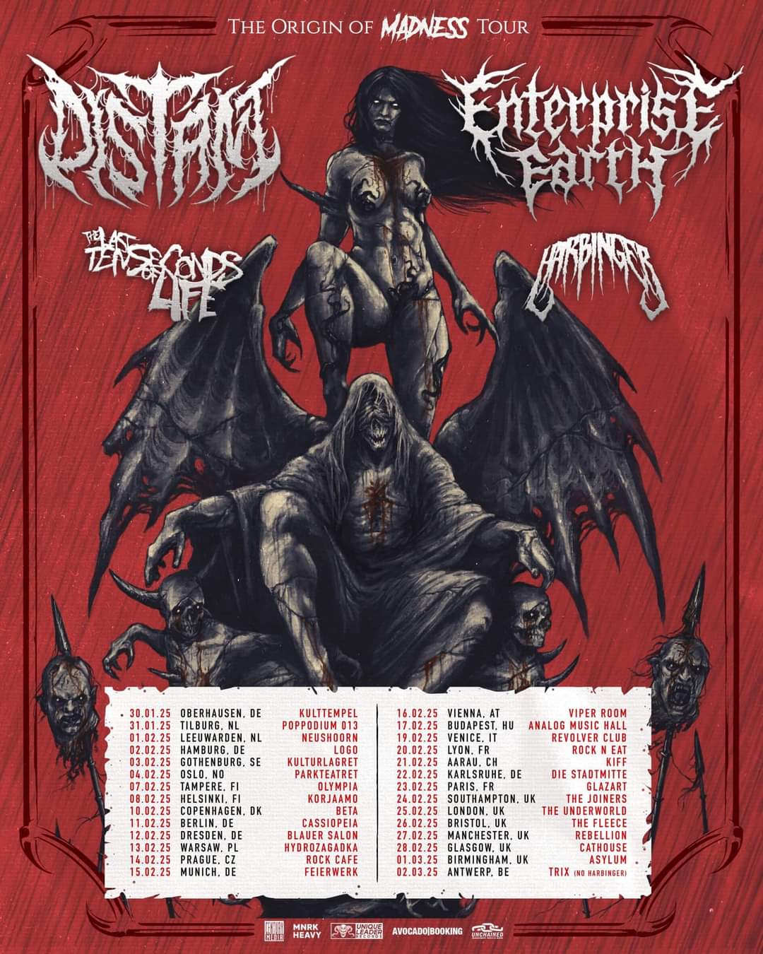 Distant and Enterprise Earth have booked a co-headlining European/UK tour for early next year. The Last Ten Seconds Of Life and Harbinger will serve as support.