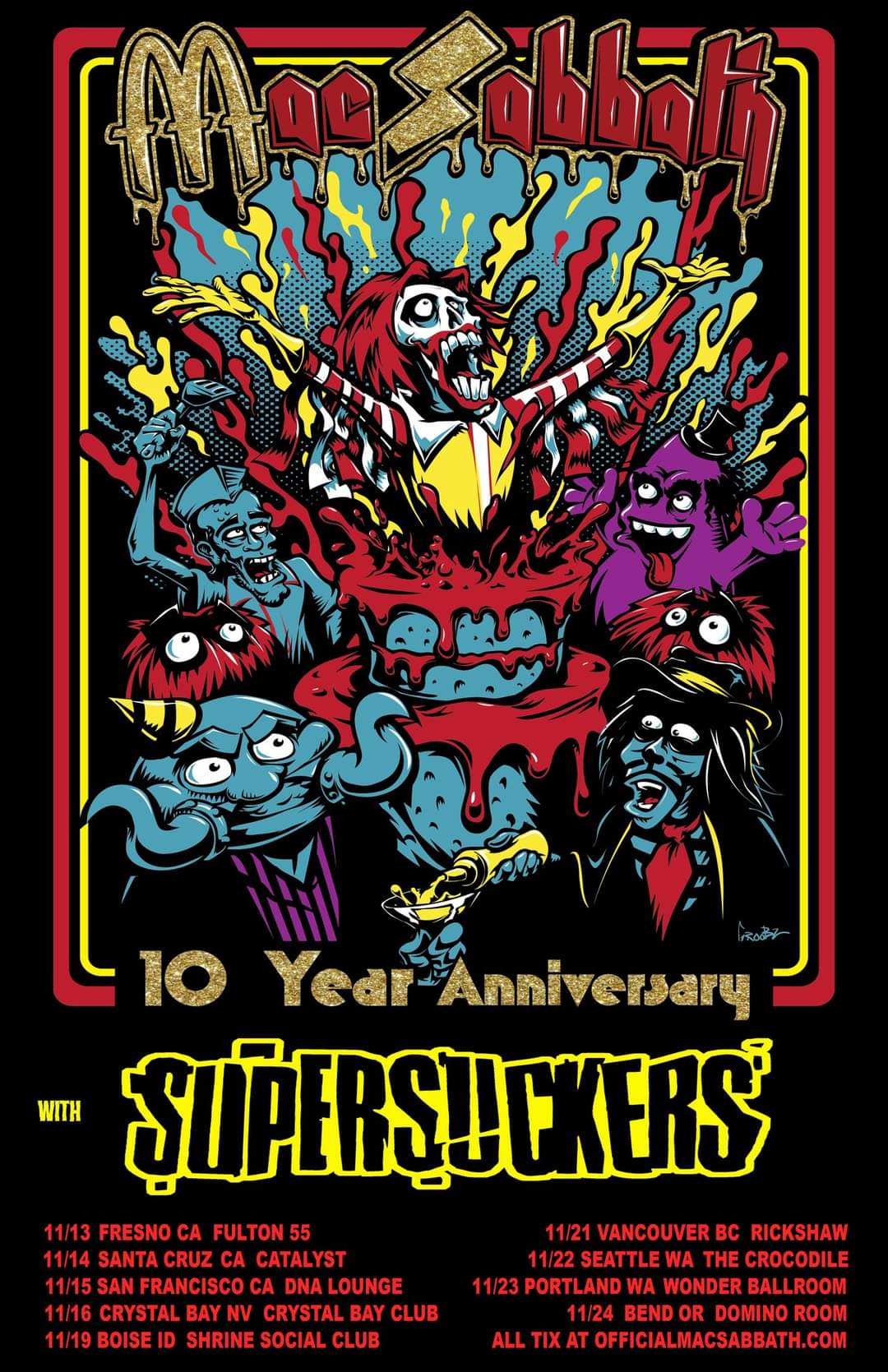Mac Sabbath, the McDonald’s themed Black Sabbath tribute band, have added some November shows to their 10th anniversary tour. Here’s the newly announced dates: