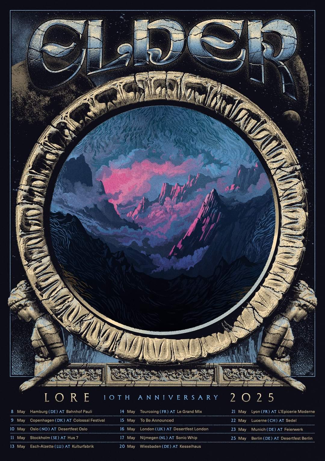 “‘Lore’ is turning 10 years old. This album marked a point of departure for Elder upon a path which the band is still walking now. For us, this is the record where the band came into its own as a unique voice in the heavy rock underground. As we approach our second decade as a band, we feel it’s appropriate to look back on this landmark for us and acknowledge it properly, which is why we’re doing a tour performing the entire album along with some other tracks from our earlier catalogue; we’ll give this era of the band a proper celebration before turning our attention once again toward the future and the next album, currently being written. We’ll also be doing a run in North America, which will be announced shortly as well.”