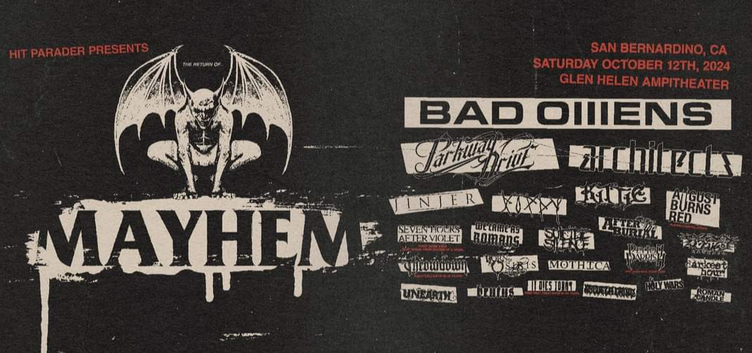 As previously reported, Mayhem Fest will return on October 12 in San Bernardino, CA. Bad Omens, Parkway Drive, Architects, Jinjer, Poppy, Kittie, August Burns Red, and more are scheduled to perform.