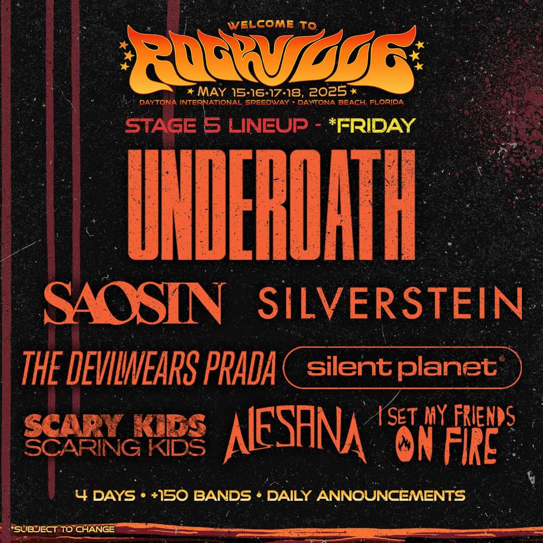 Underoath, Saosin, Silverstein, The Devil Wears Prada, Silent Planet, Scary Kids Scaring Kids, Alesana, and I Set My Friends on Fire have been added to next year’s Welcome To Rockville festival. That event will take place at the Daytona International Speedway in Daytona Beach, FL on May 15-18. Previously announced artists include: The Dillinger Escape Plan, Quicksand, HEALTH, Deafheaven, Converge, Full Of Hell, Harm’s Way, and Candy.
