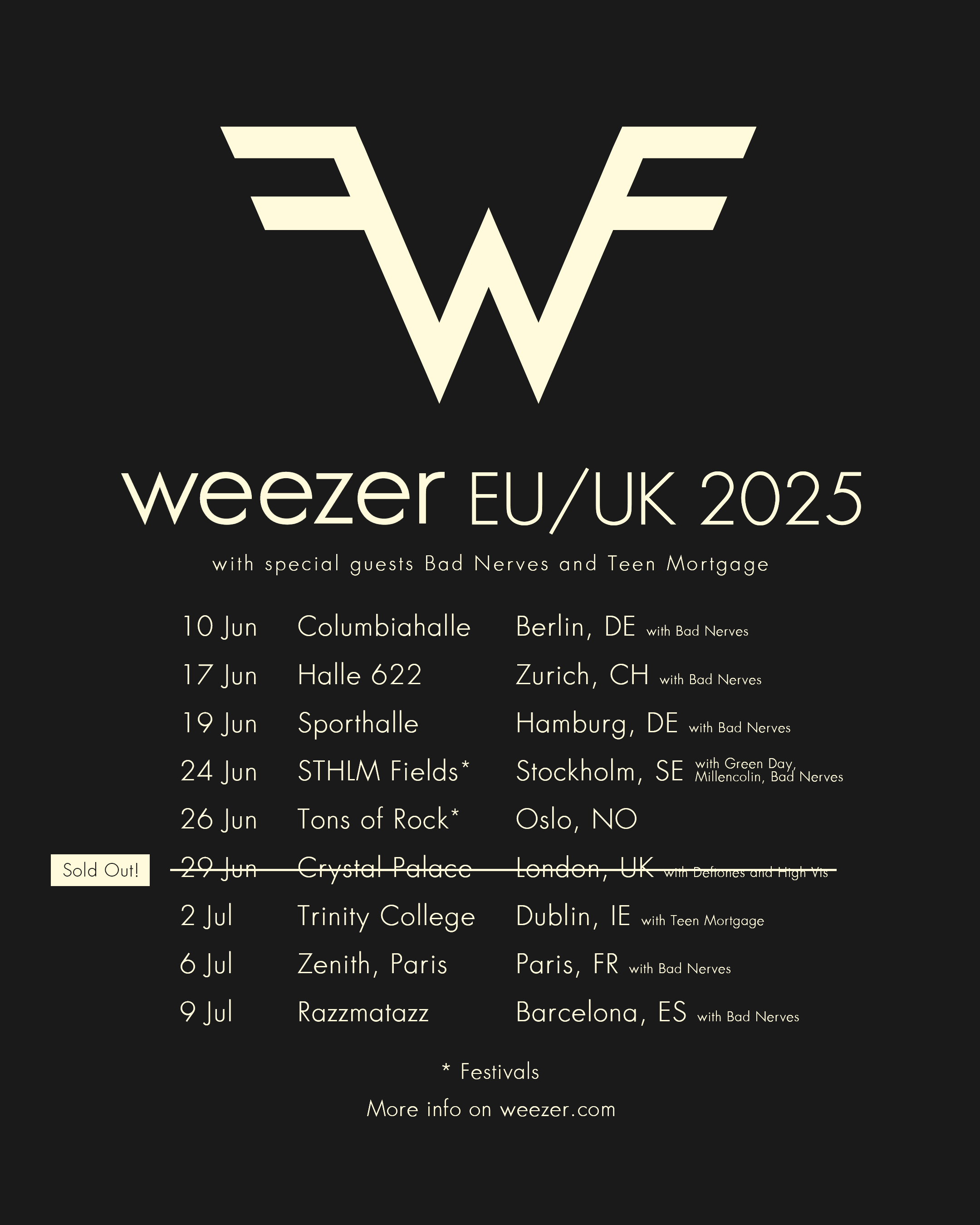 Weezer have announced a 2025 European/UK tour. Here’s the dates for that run: