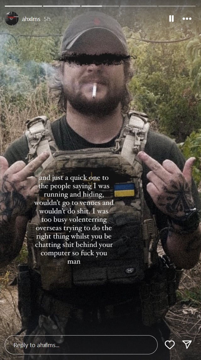 and just a quick one to the people saying I was running and hiding, wouldn’t go to venues and wouldn’t do shit, I was too busy volunteering overseas trying to do the right thing whilst you be chatting shit behind your computer so fuck you man