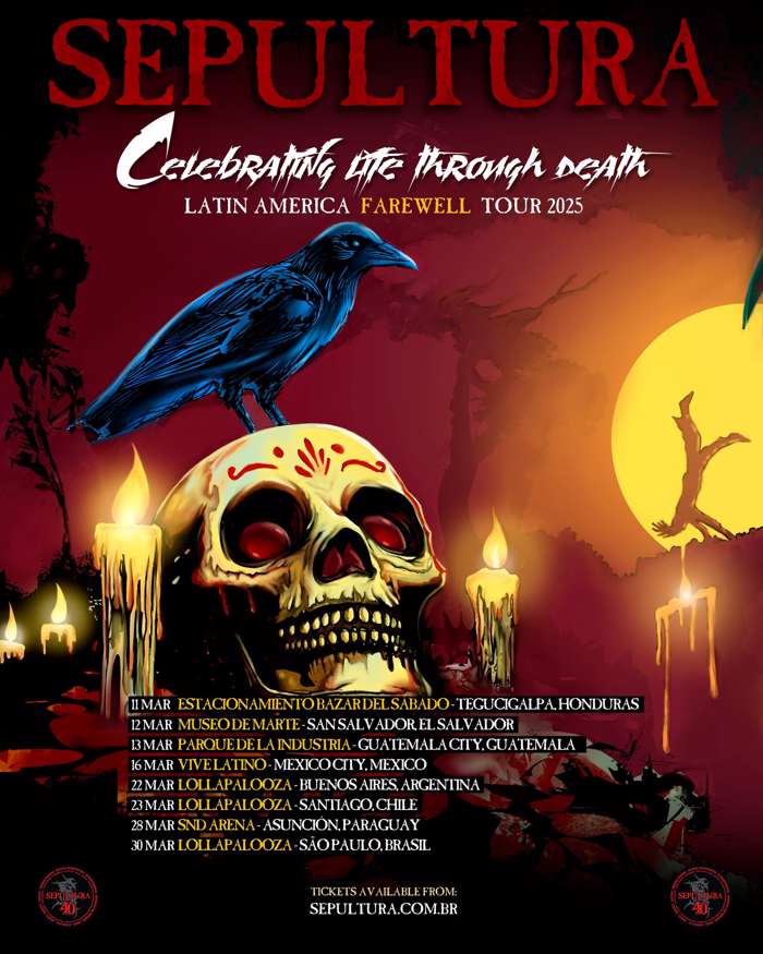 Sepultura have expanded their farewell tour with the addition of some Latin American shows in March 2025. Here’s the newly announced dates: