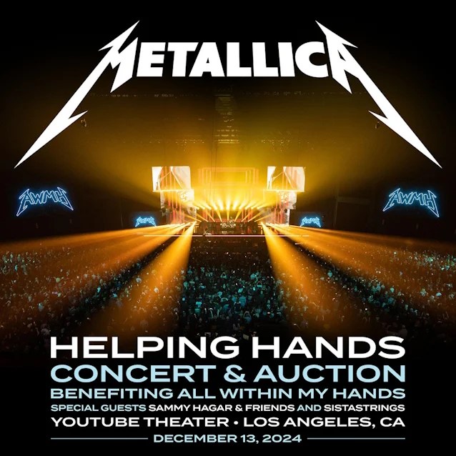 Metallica have revealed that they are planning to stream their upcoming “Helping Hands Concert & Auction” on December 19 via YouTube. As previously reported, that event will take place at the YouTube Theater in Los Angeles, CA tomorrow (December 13) and it will also feature performances from Sammy Hagar & Friends (Michael Anthony, Joe Satriani, and Kenny Aronoff) and SistaStrings. Metallica commented:
