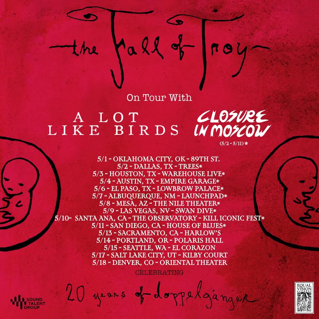 The Fall Of Troy will be celebrating the 20th anniversary of “Doppelgänger” on a headlining U.S. tour. A Lot Like Birds and Closure In Moscow will open.
