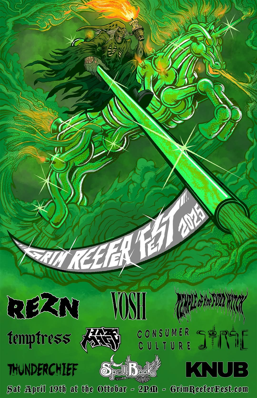 The lineup has been revealed for this year’s Grim Reefer Fest. The event will take place at the Ottobar in Baltimore MD on April 19 and it will feature: REZN, Vosh, Temple Of The Fuzz Witch, Haze Mage, Temptress, Sorge, Consumer Culture, Thunderchief, Spellbook, and Knub.