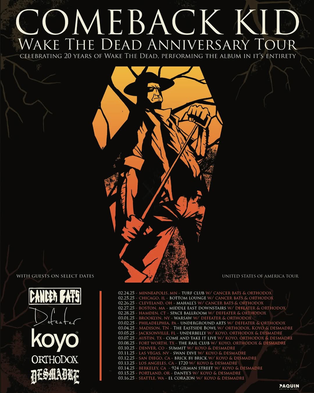 Comeback Kid will be celebrating the 20th anniversary of “Wake The Dead” by performing the album in full on a headlining U.S. tour. Cancer Bats, Defeater, Koyo, Orthodox, and Desmadre will open on select dates.