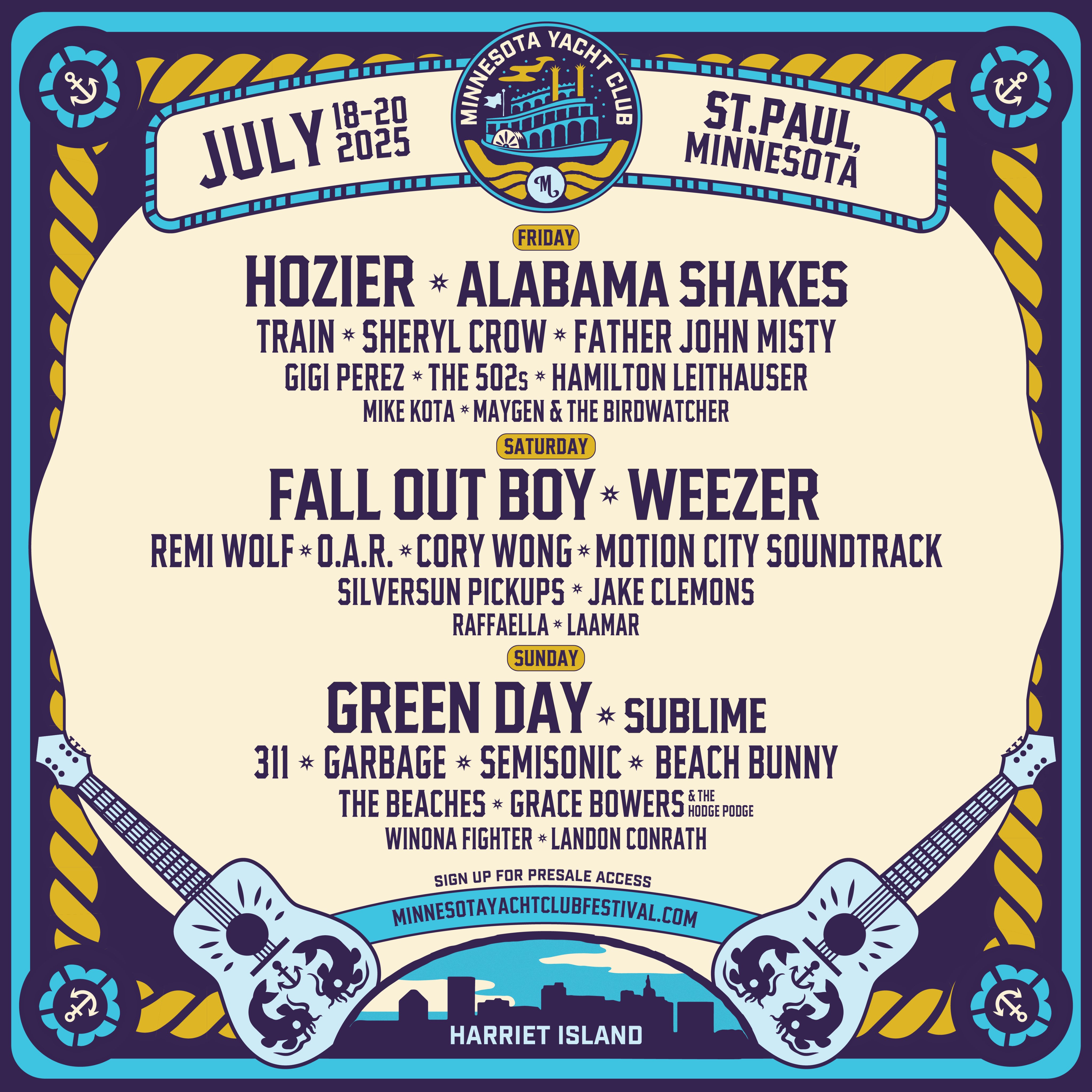 The lineup has been revealed for this year’s Minnesota Yacht Club Festival. The event will take place at Harriet Island Regional Park in St. Paul, MN on July 18-20 and it will feature the following daily lineups: