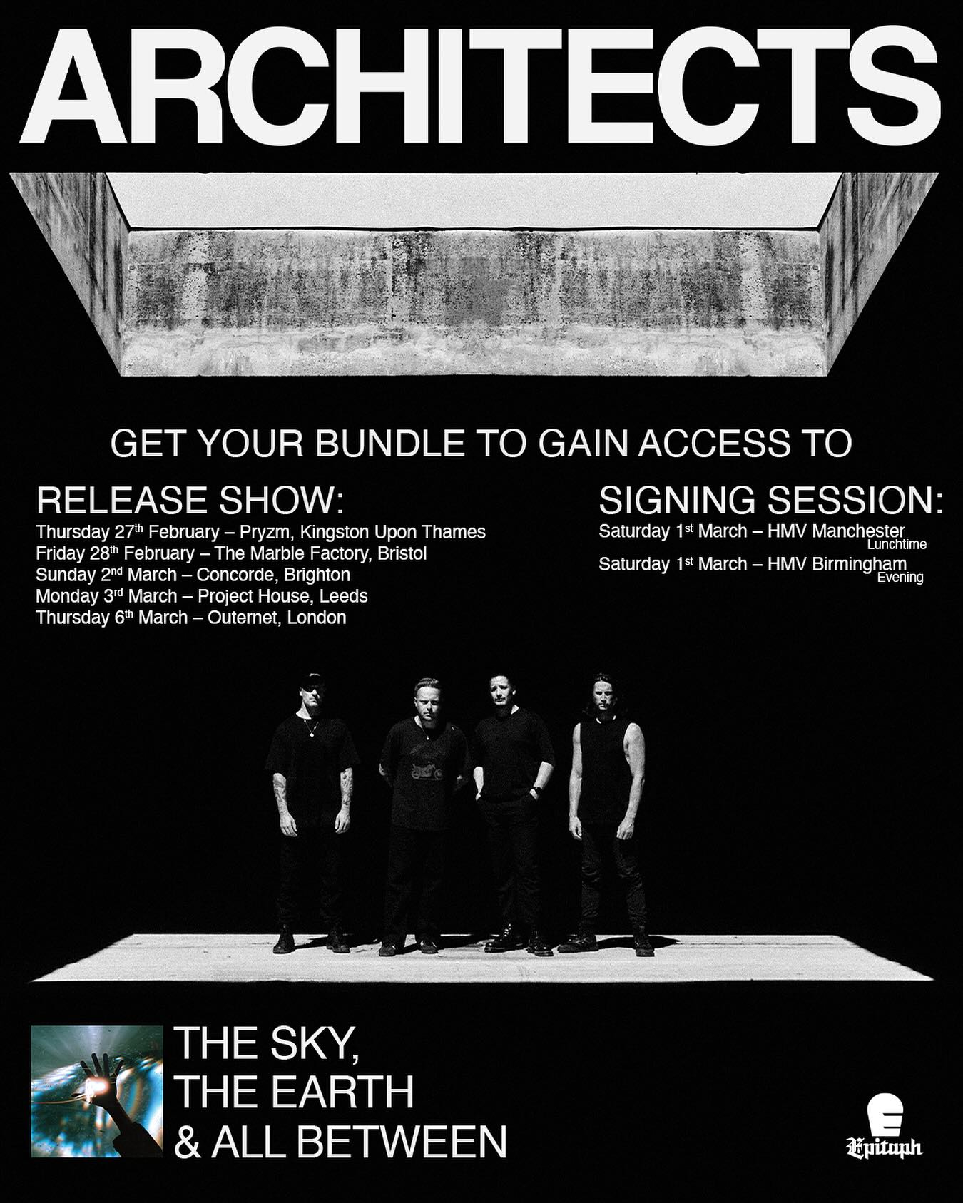 Architects will be celebrating the release of their new album, “The Sky, The Earth & All Between,” during some intimate UK shows. As previously reported, that effort will be available on February 28. Here’s the dates: