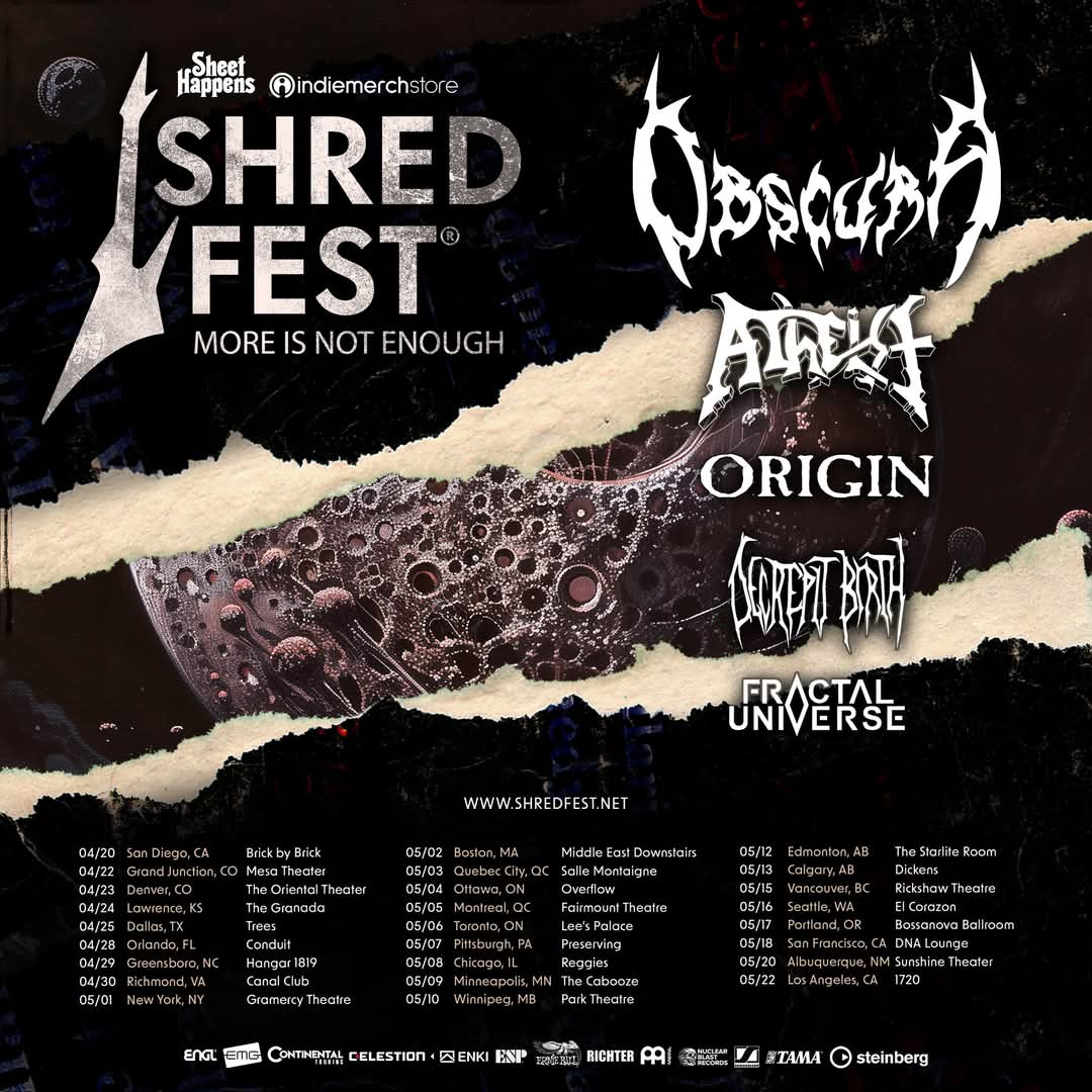 Obscura, Atheist, Origin, Decrepit Birth, and Fractal Universe will be hitting the road on the 2025 “Shred Fest” tour. That trek will take place in North America this spring.