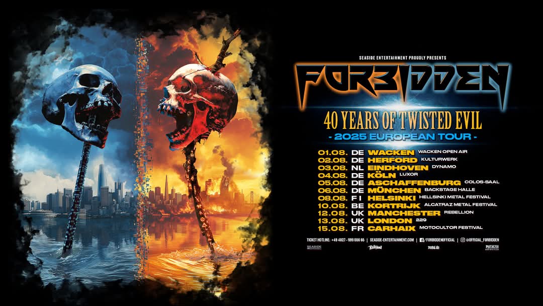 Forbidden have announced the dates for their “40 Years Of Twisted Evil” European/UK tour. The short trek will take place this August and it will find the band celebrating their 40th anniversary and the 35th anniversary of “Twisted Into Form.”
