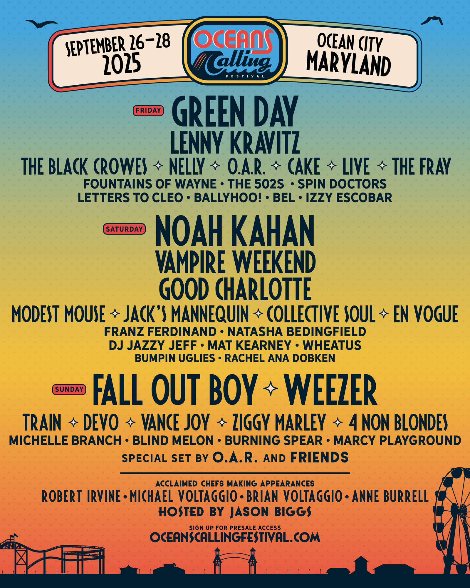 September 27: Noah Kahan, Vampire Weekend, Good Charlotte, Modest Mouse, Jack’s Mannequin, Collective Soul, En Vouge, Franz Ferdinand, Natasha Bedingfield, DJ Jazzy Jeff, Mat Kearney, Wheatus, Bumpin Uglies, and Rachel Ana Dobken.