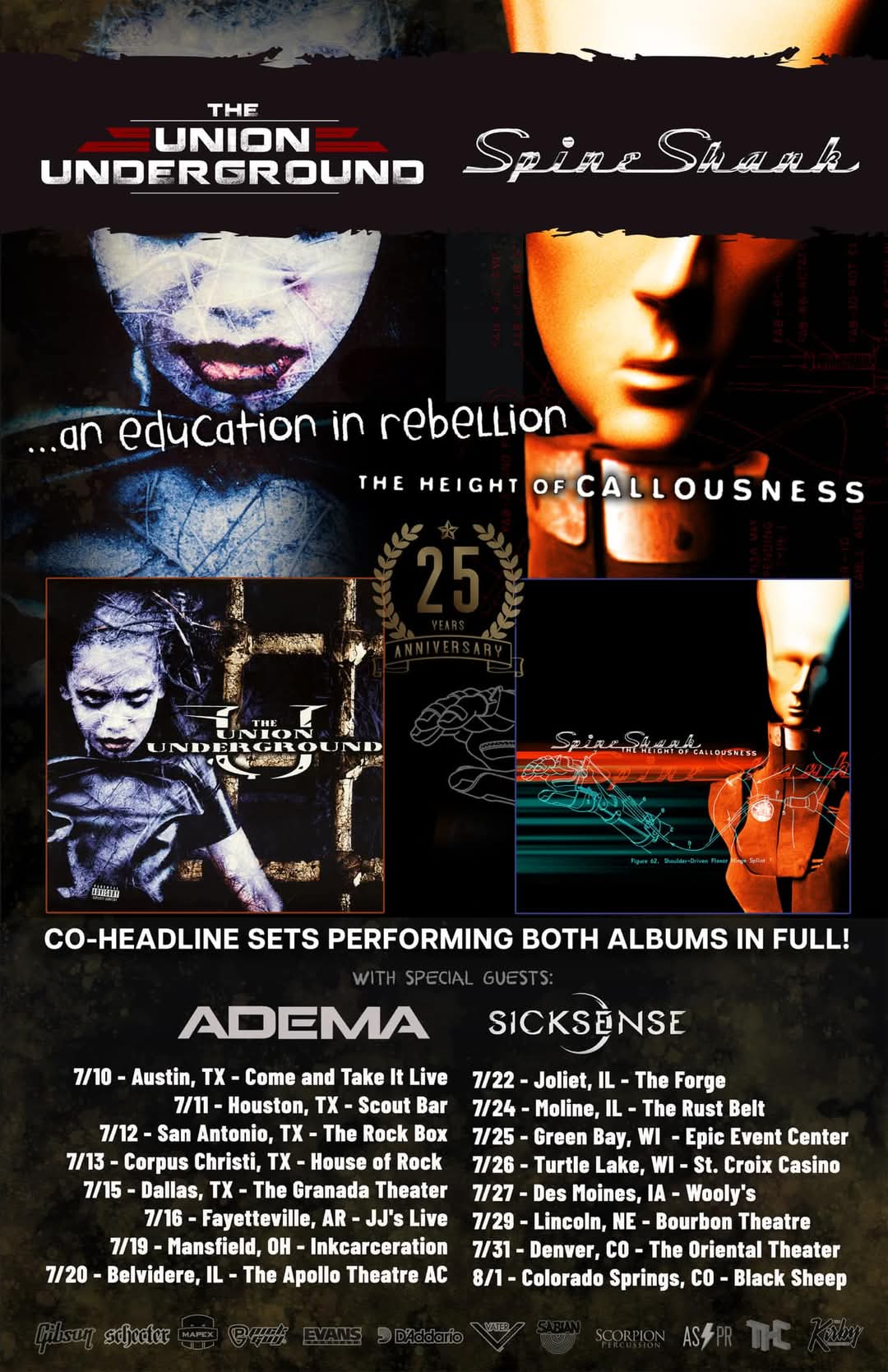 The Union Underground and Spineshank have announced the dates for their “25 Years Of Rebellion And Callousnes” tour. The trek will find The Union Underground performing “…An Education In Rebellion” and Spineshank performing “The Height Of Callousness.” Adema and Sicksense will open.