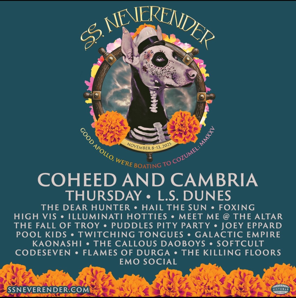 Twitching Tongues have been added to Coheed And Cambria’s S.S. Neverender cruise. The event will take place aboard the Norwegian Jewel as it sails from Miami, FL to Cozumel, Mexico on November 8-13. Previously announced acts include: Coheed And Cambria, Thursday, L.S. Dunes, The Dear Hunter, Hail The Sun, Foxing, High Vis, Illuminati Hotties, Meet Me @ The Altar, The Fall Of Troy, Puddles Pity Party, Joey Eppard, Pool Kids, Galactic Empire, Kaonashi, The Callous Daoboys, Softcult, Codeseven, Flames Of Durga, The Killing Floors, and Emo Social.