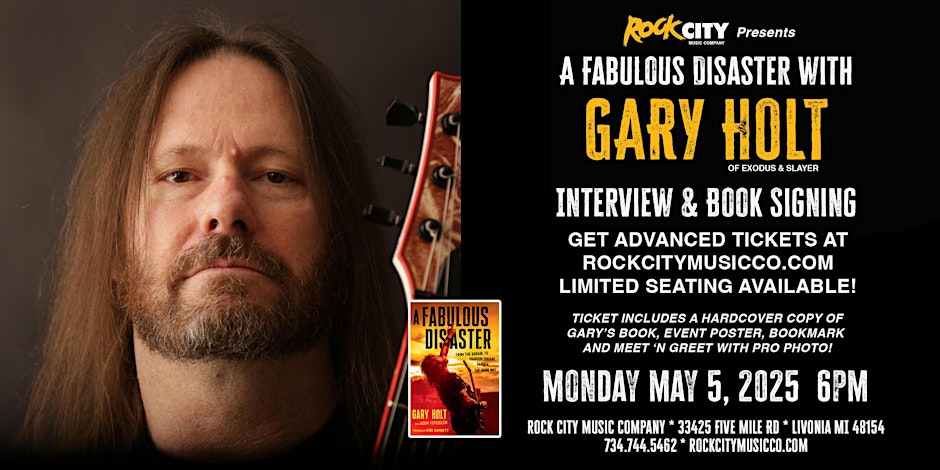 Gary Holt (Exodus) will be singing copies of his memoir, “A Fabulous Disaster: From The Garage to Madison Square Garden, The Hard Way,” at Rock City Music Company in Livonia, MI on May 5. Tickets can be found HERE.