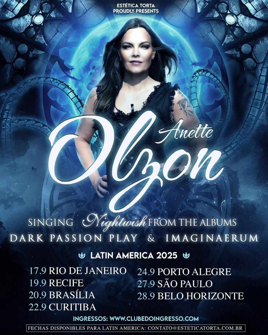Former Nightwish singer Anette Olzon will be performing songs from “Dark Passion Play” and “Imaginaerum” on a September tour in Brazil. Here’s the dates:
