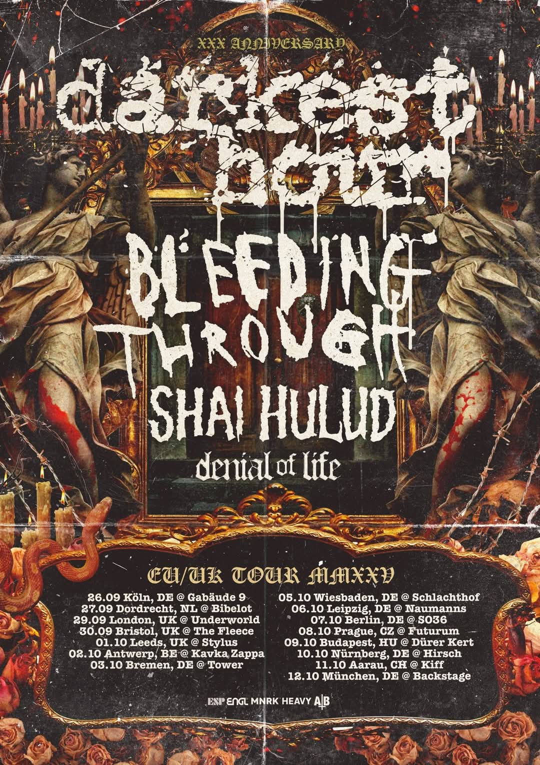Joining us on this tour will be long time friends and massively awesome, Bleeding Through who haven’t toured the EU / UK in over a decade. Shai Hulud who have been friends of ours, almost since our inception, and Denial of Life who will set the night off with their unique style of hardcore / thrash / metal that fits right in on this line up!