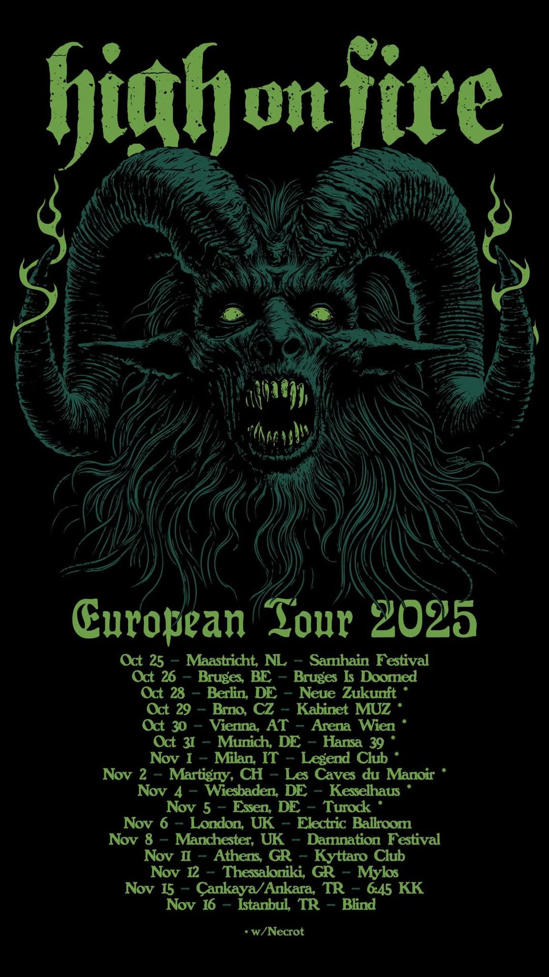 High On Fire have announced a fall European/UK tour. Necrot will join the band on select dates.