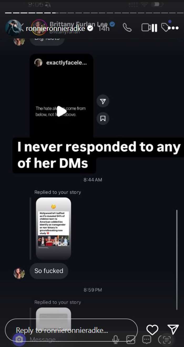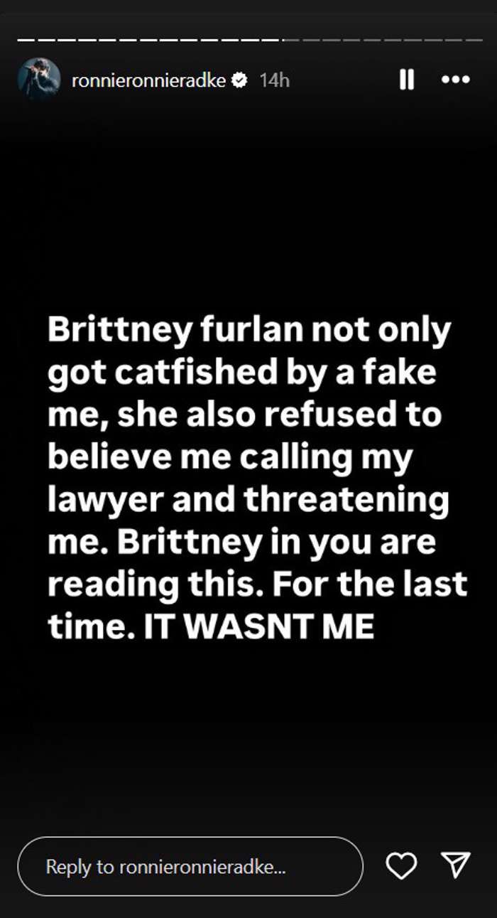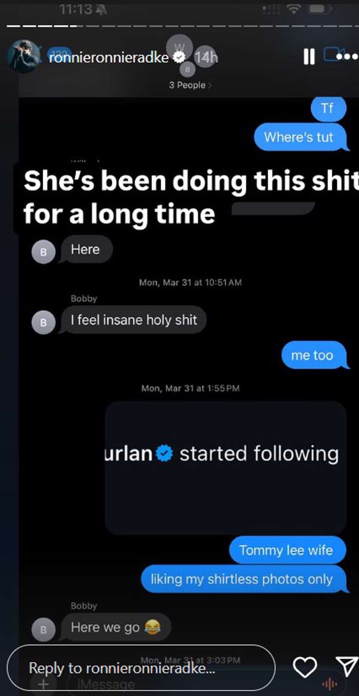 Falling In Reverse frontman Ronnie Radke seems to have gotten tangled up in the rift between Mötley Crüe drummer Tommy Lee and his estranged wife Brittany Furlan. The issue stems from an apparent catfish situation that saw someone pretending to be Radke on Snapchat. Furlan was allegedly messaging the imposter and even showed up at Radke’s house following the communication. Radke has since detailed the situation through his Instagram stories: