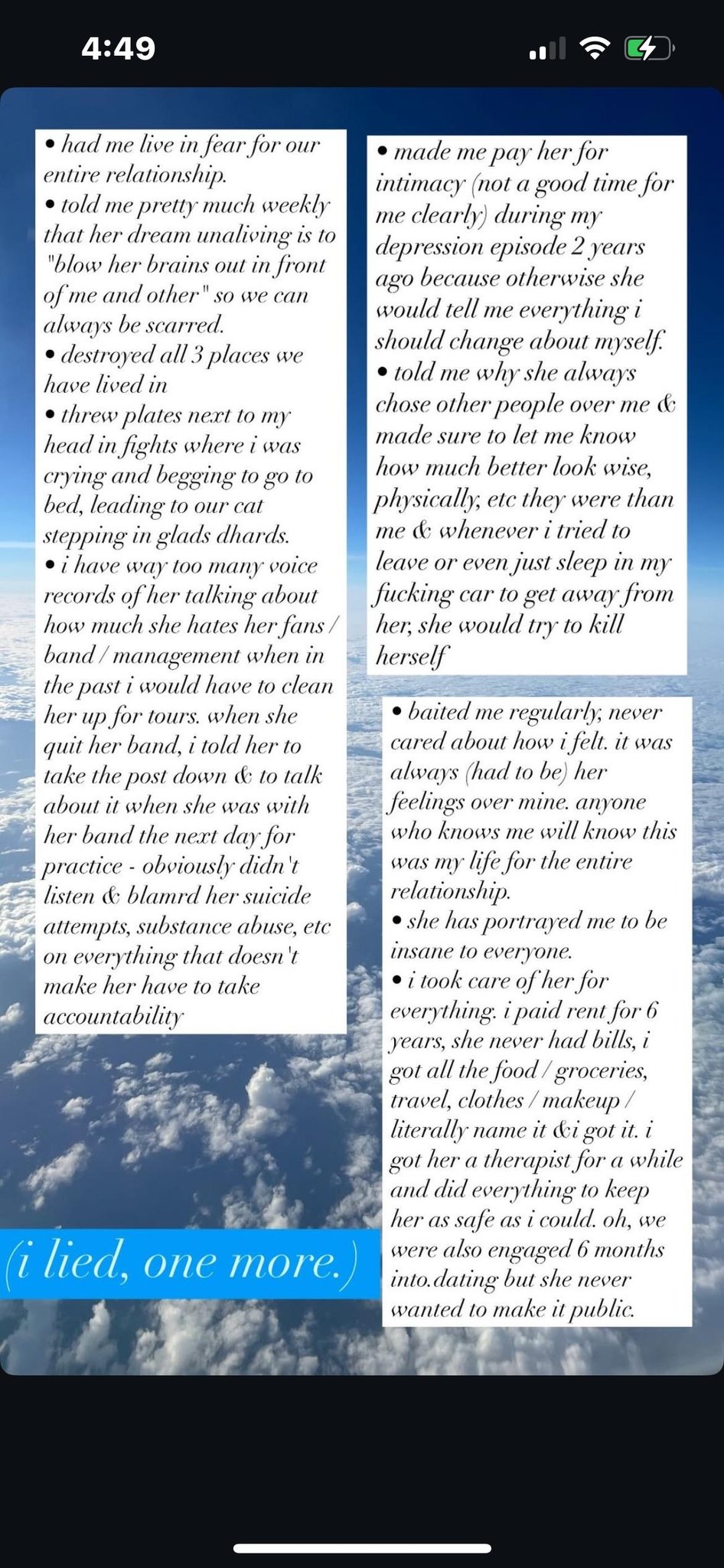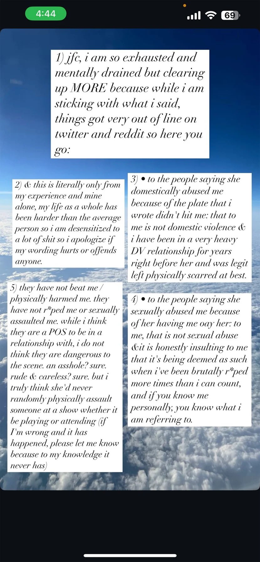 Connie Sgarbossa (ex-SeeYouSpaceCowboy) has been hit with a number of disturbing allegations from a former partner. As such, the vocalist has since responded, saying “there were exaggerations due to the heat of the moment.” You can see screenshots of the initial allegations and an updated statement alongside Sgarbossa’s comments below:
