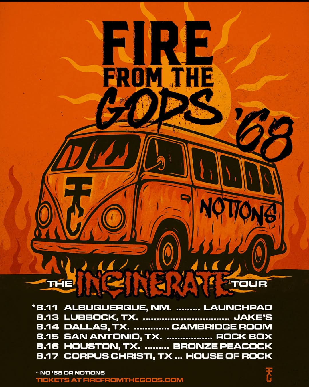 Fire From The Gods, ’68, and Notions have booked some Texan shows together. Here’s the dates: