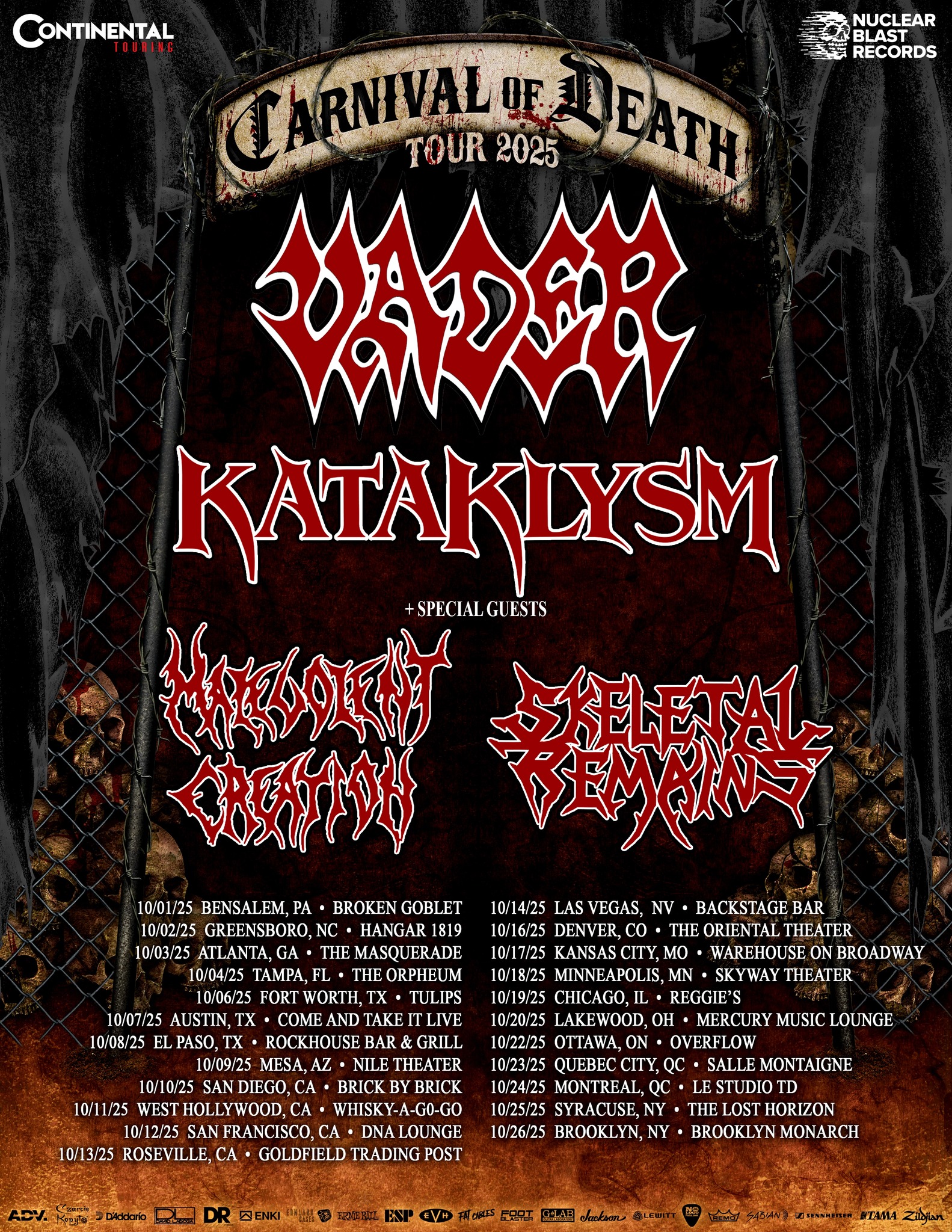 Vader and Kataklysm are set to co-headline the “Carnival Of Death” tour in North America this fall. Malevolent Creation and Skeletal Remains will open.
