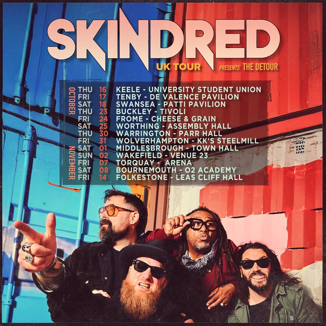 “We as a band are extremely conscientious about venturing outside of just the major UK cities to spread the Skindred sound. This October the ‘Detour’ is our attempt to do just that. As a band we love to play live, but there are so many amazing towns and cities with fantastic venues across the country that get forgotten and need to be supported. That’s where our ‘Detour’ comes in! We can’t wait to head back out across the UK this October on our ‘Detour.’ See you there!”