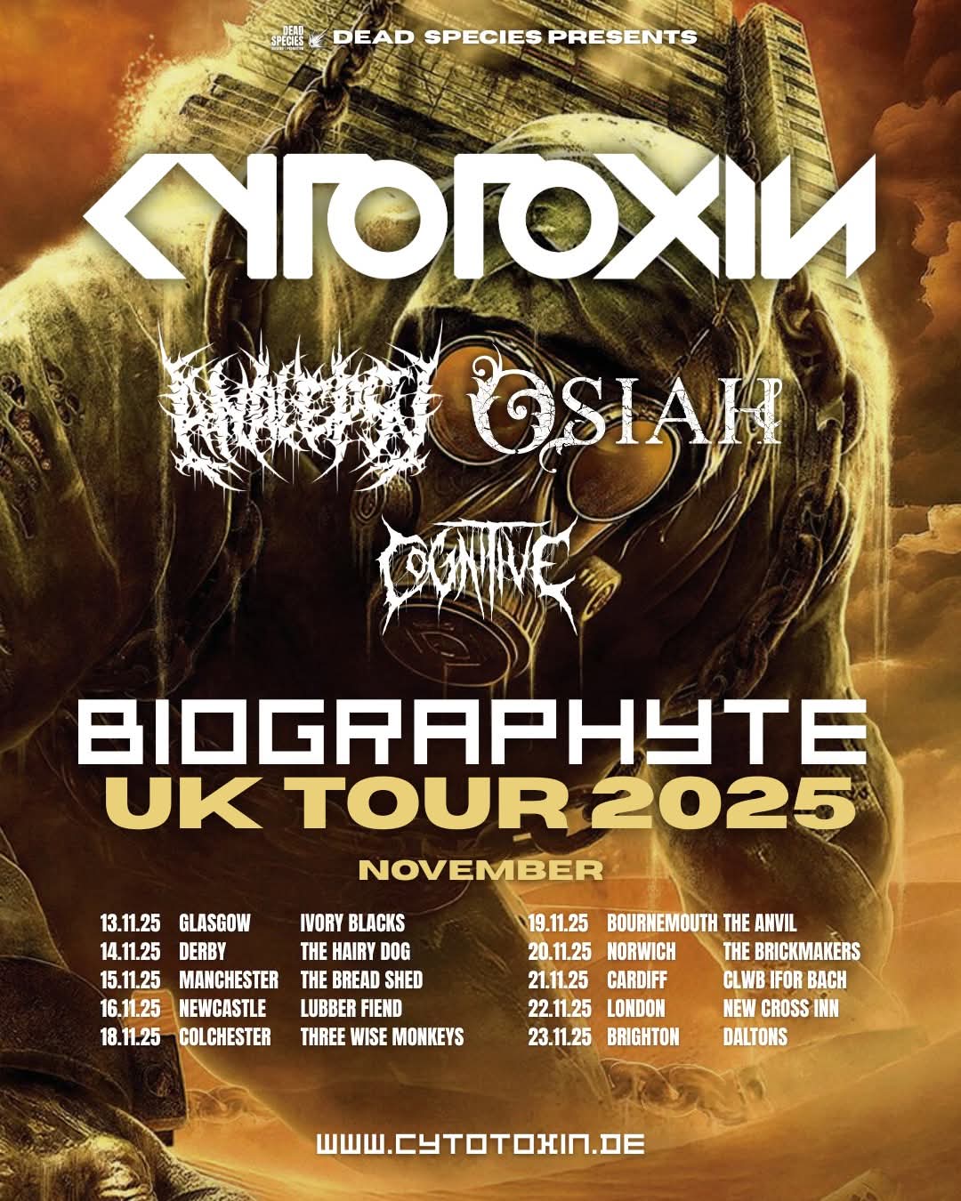 Cytotoxin have announced a fall UK tour with Analepsy, Osiah, and Cognitive. Here’s the dates: