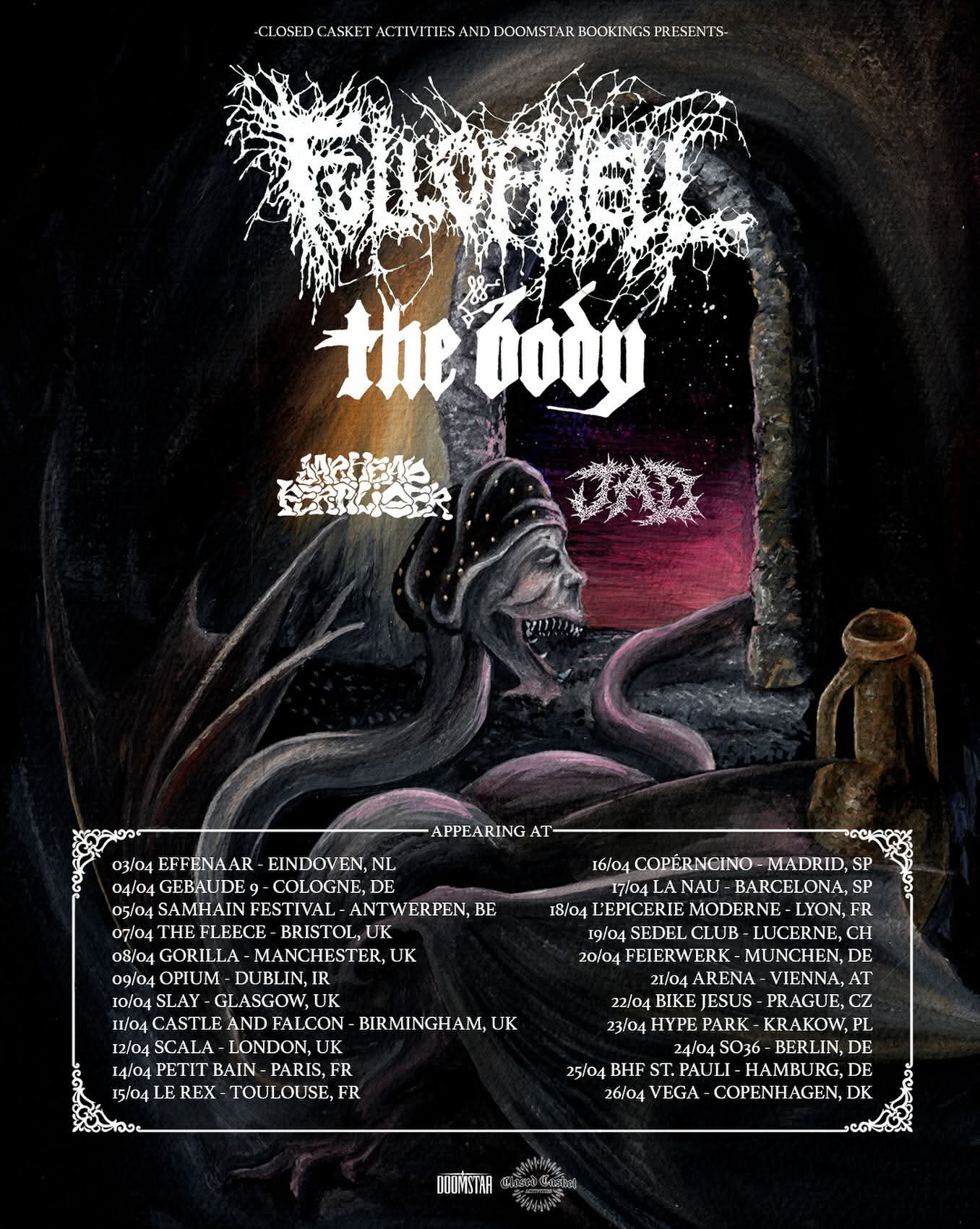 Full Of Hell have announced a headlining European/UK tour. The Body, Jarhead Fertilizer, and JAD will open.
