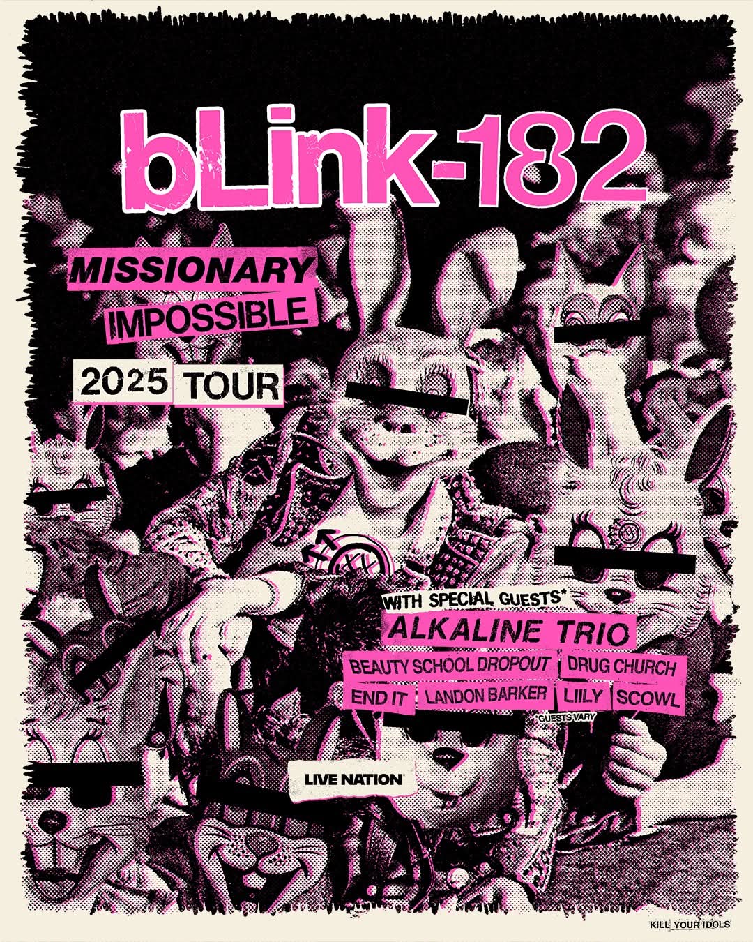 Blink-182 have revealed the opening acts for their upcoming U.S. tour with Alkaline Trio. Among them are Beauty School Dropout, Drug Church, Scowl, End It, Landon Barker, and Liily, who will perform on select dates.