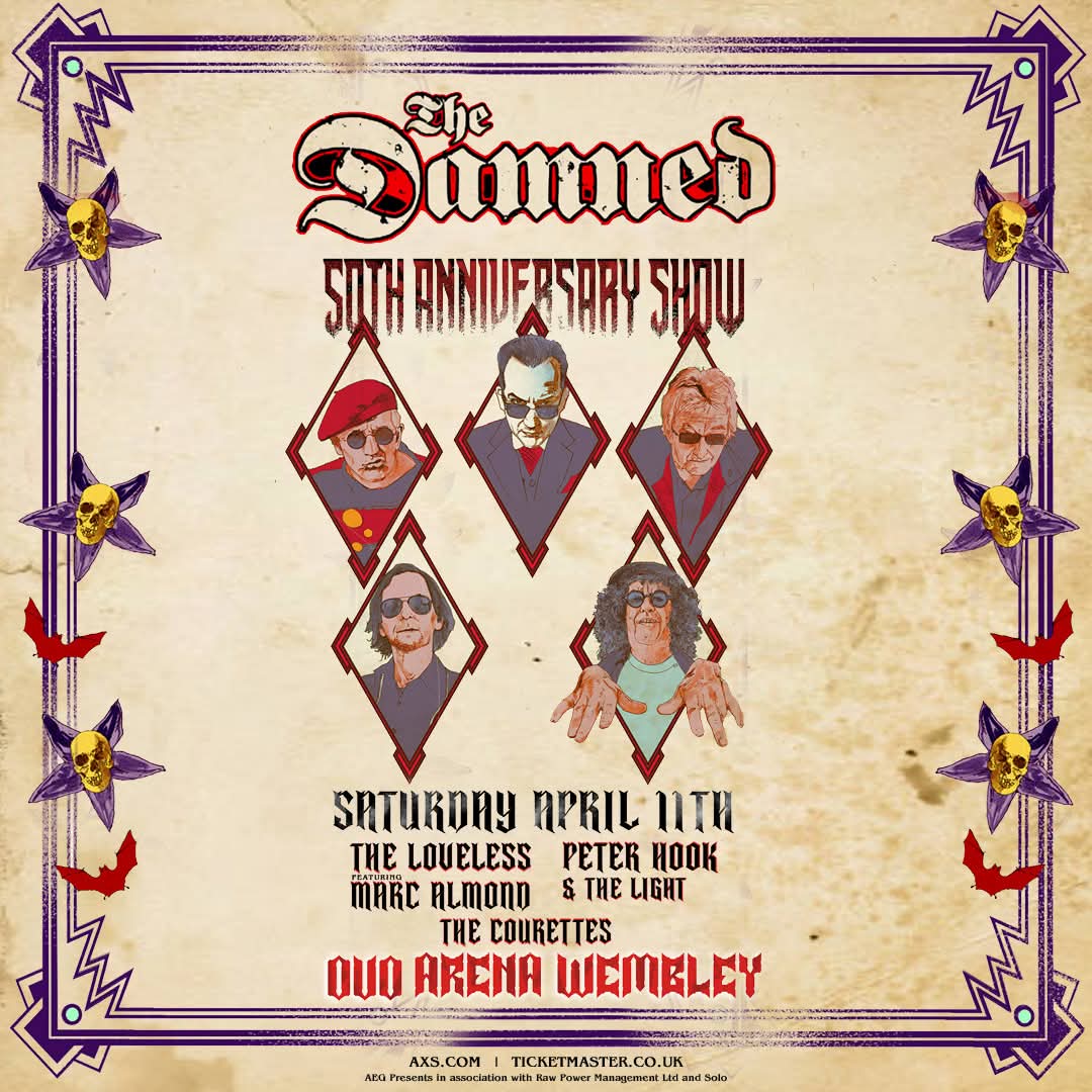 The Damned will be celebrating their 50th anniversary during a special show at the OVO Arena Wembley in London, UK. The concert will be held on April 11, 2026 and it will also include performances from The Loveless (feat. Marc Almond), Peter Hook & The Light, and The Courettes.