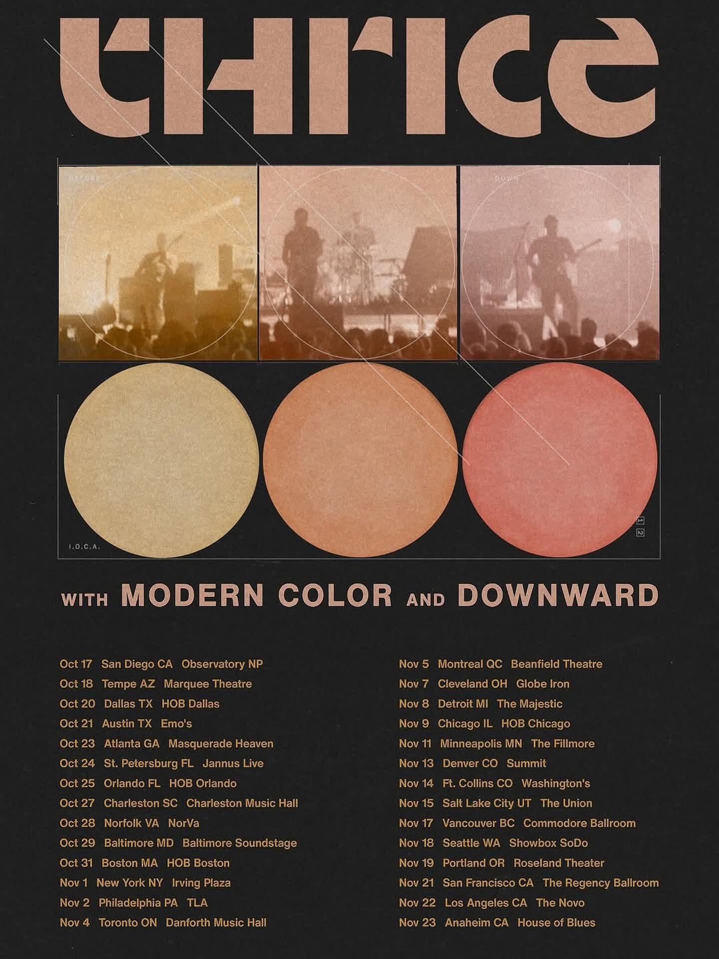Thrice have announced a headlining North American tour. Modern Color and Downward will open.