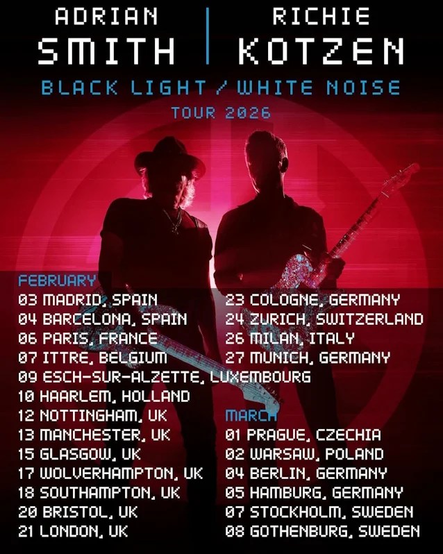 Smith/Kotzen, the band featuring Adrian Smith (Iron Maiden) and Richie Kotzen (The Winery Dogs), have announced a 2026 European/UK tour. The duo will be touring in support of their latest album “Black Light / White Noise.”