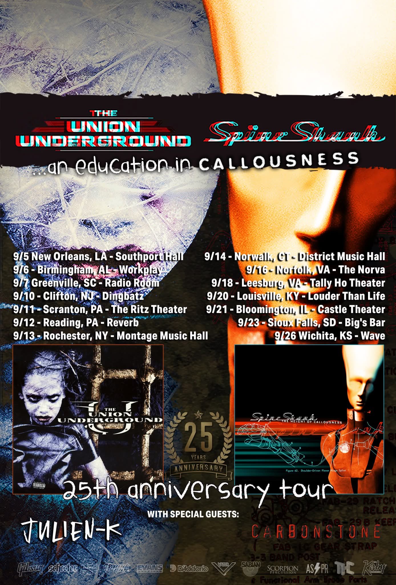 The Union Underground and Spineshank have added another leg of dates to their “25 Years Of Rebellion And Callousnes” tour. That trek will find The Union Underground performing “…An Education In Rebellion” and Spineshank performing “The Height Of Callousness.” Julien-K and Carbonstone will open. Here’s the dates: