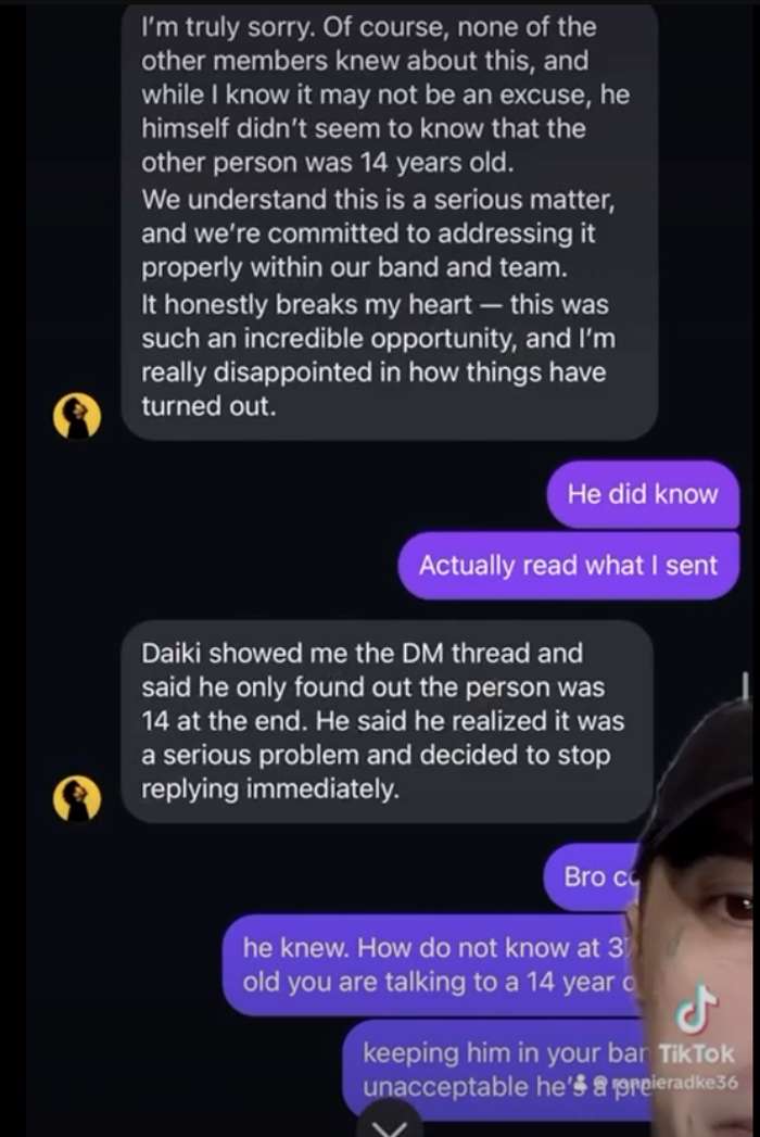 He also shared screenshots of the alleged conversation and a chat he had with Crossfaith vocalist Kenta Koie regarding the situation. He later added: