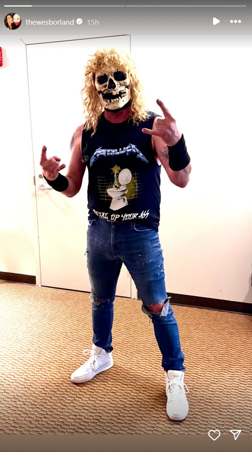Last night (June 27) Limp Bizkit played their last show on Metallica’s “M72” tour in Denver, CO. As such, guitarist Wes Borland used the set to pay tribute to Metallica’s frontman James Hetfield. You can see a photo and footage of him dressed as a skull-faced Hetfield below: