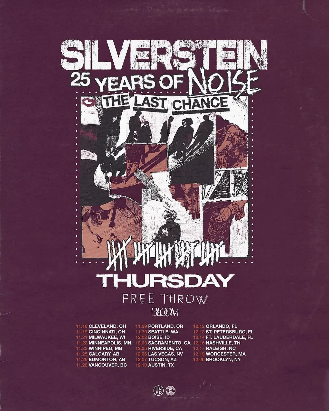 Silverstein have announced the final leg of their 25th anniversary tour. Thursday, Free Throw, and Bloom will open.