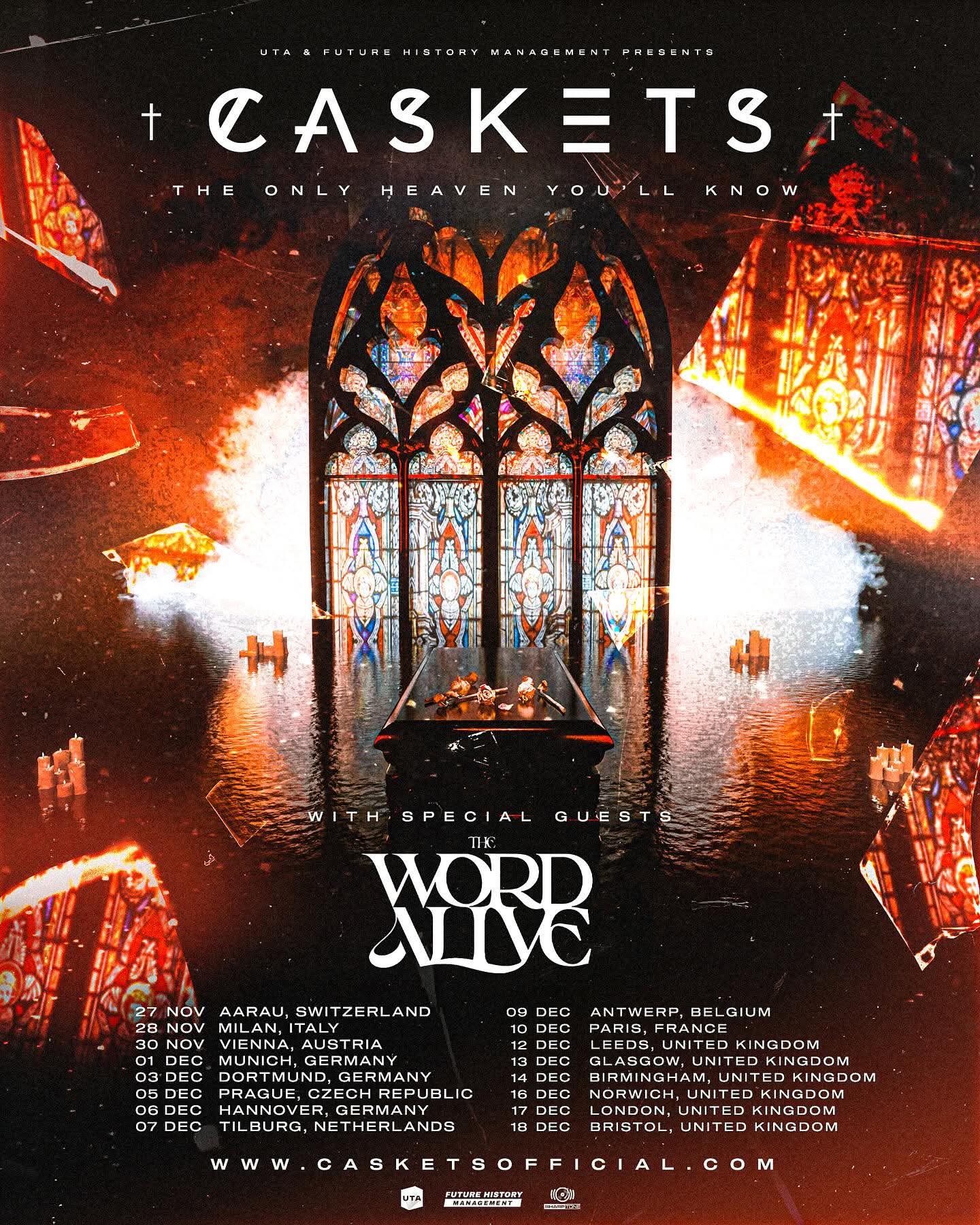 Caskets have announced a European/UK tour in support of their upcoming album “The Only Heaven You’ll Know” (out November 7). The Word Alive will open. Here’s the dates: