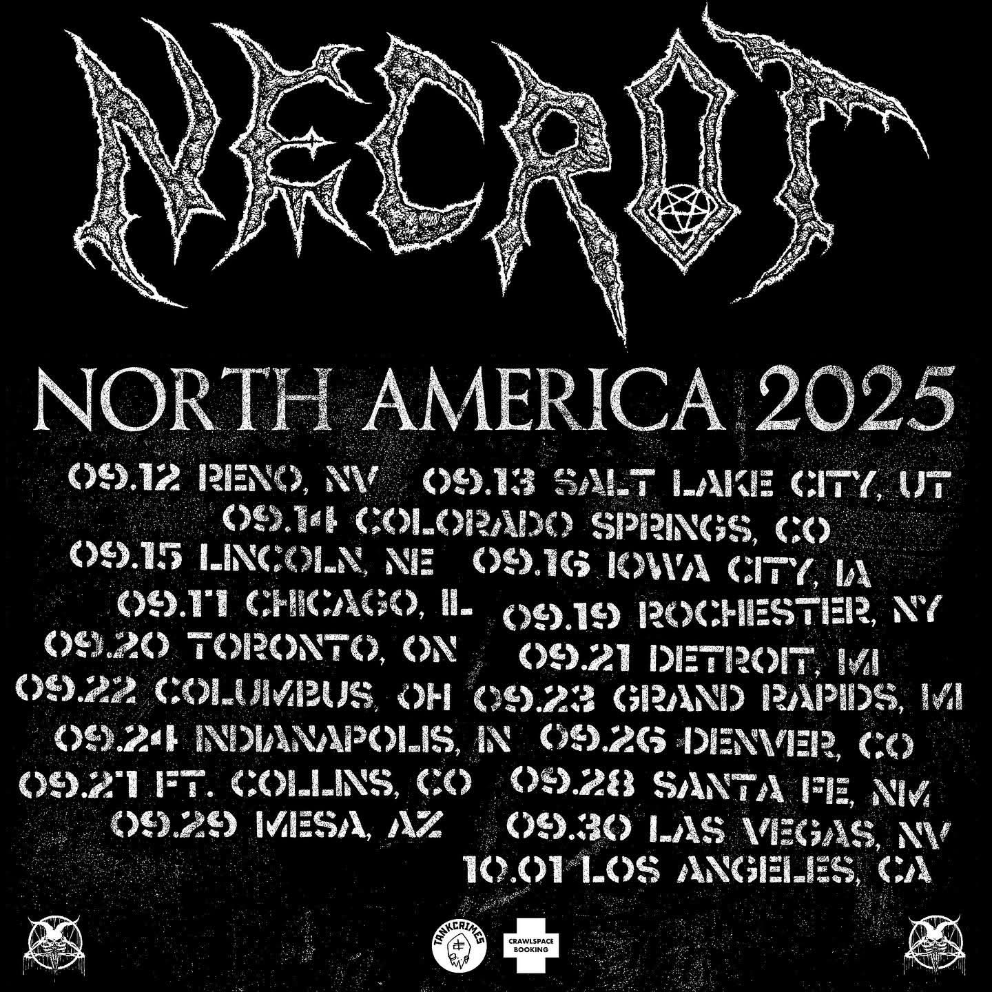 Necrot have announced some September headlining shows. These concerts will lead up to their North American tour with Carcass, Brujeria, and Hedonist.