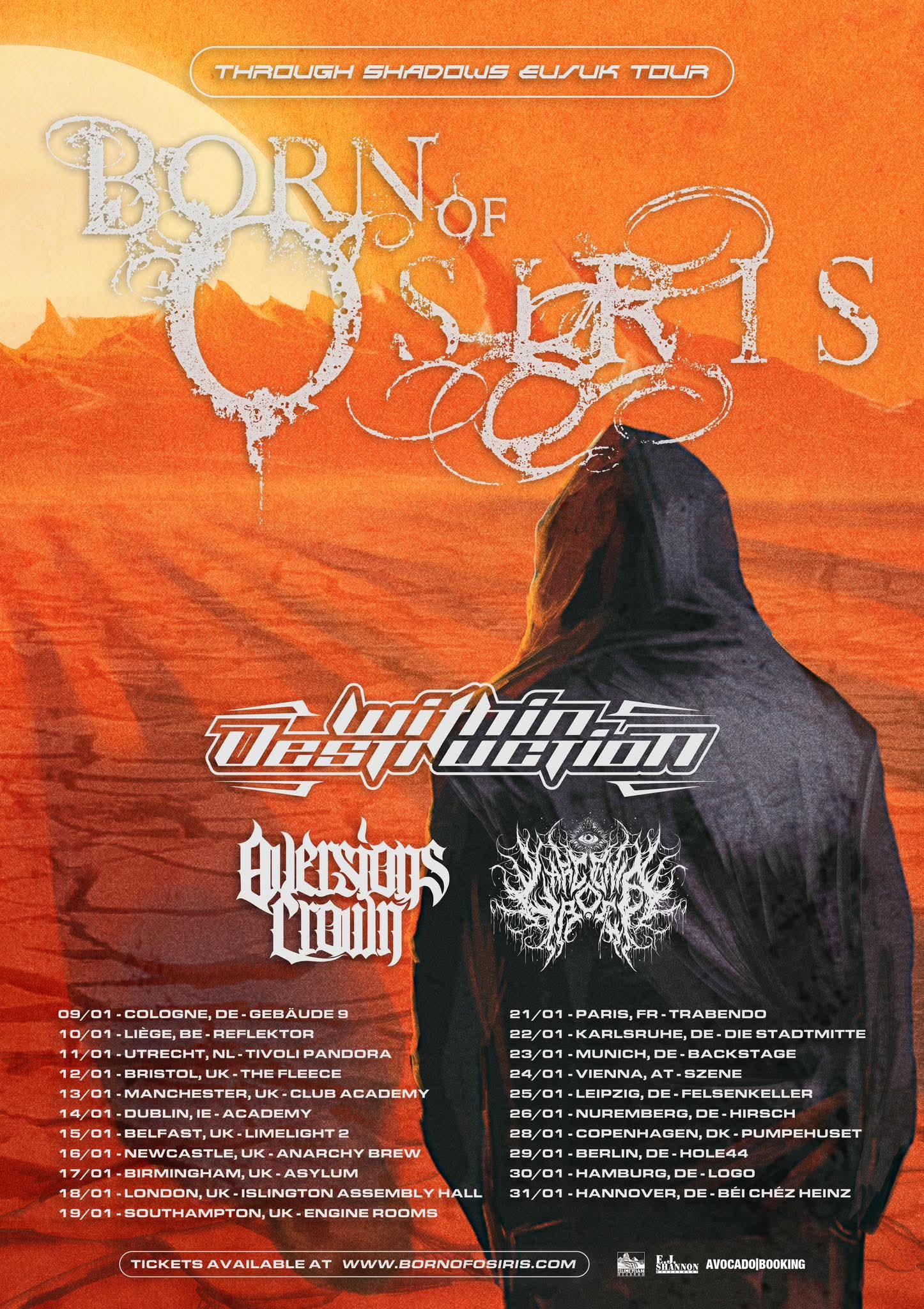 Born Of Osiris have booked a European/UK tour for early next year. Within Destruction, Aversions Crown, and LarcɆnia RoɆ will serve as support.