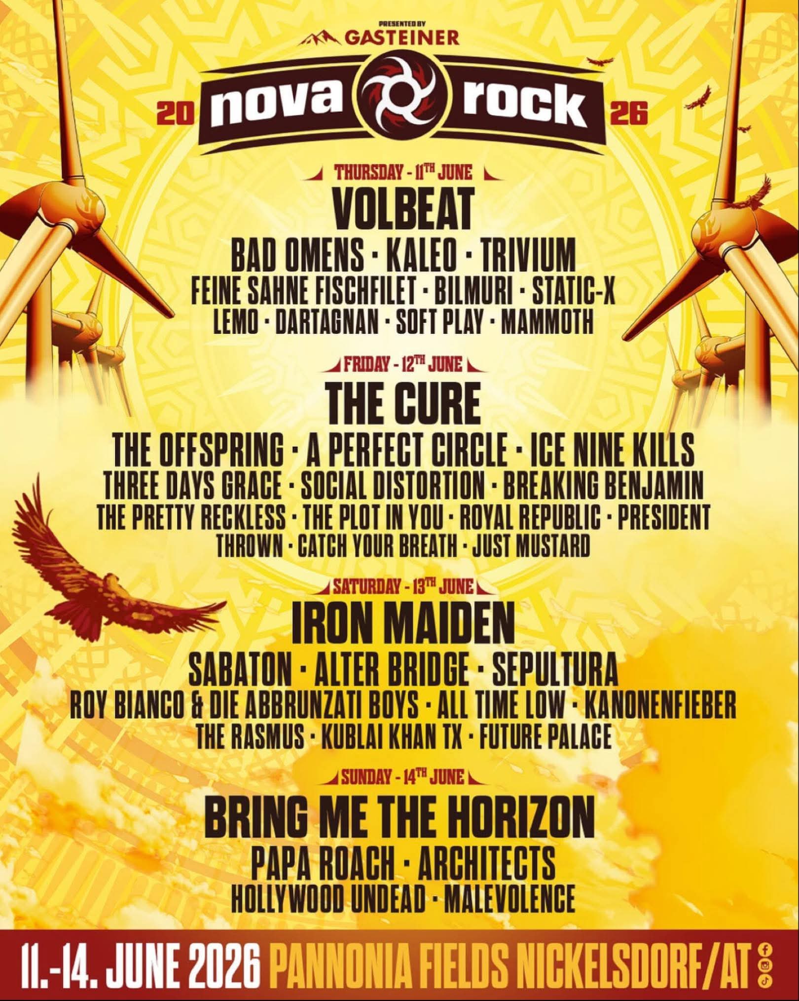 The first set of bands have been revealed for next year’s Nova Rock festival. The event will take place at Pannonia Fields in Nickelsdorf, AUT on June 11-14 and it will feature the following daily lineups: